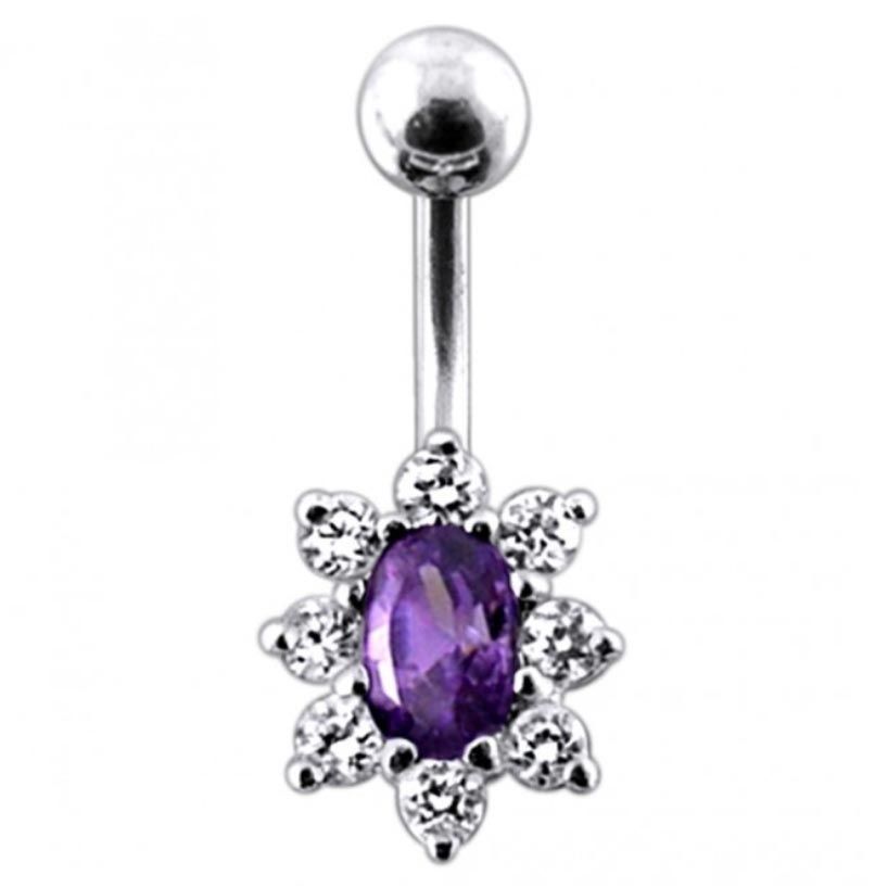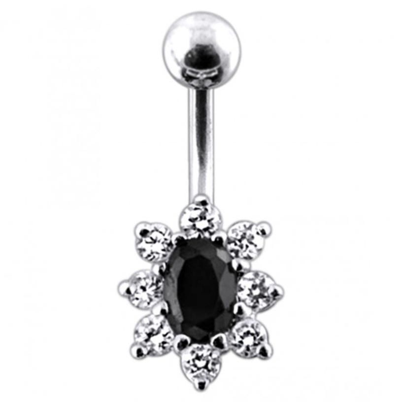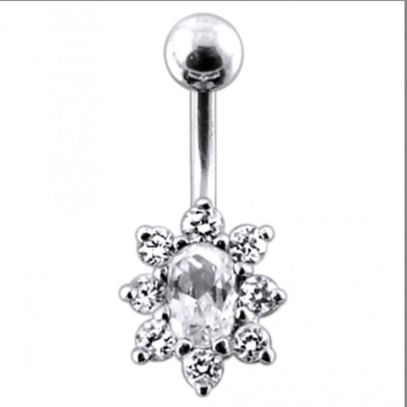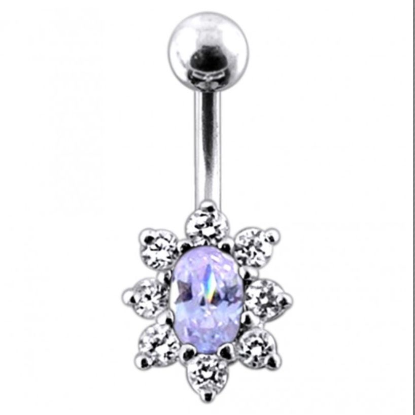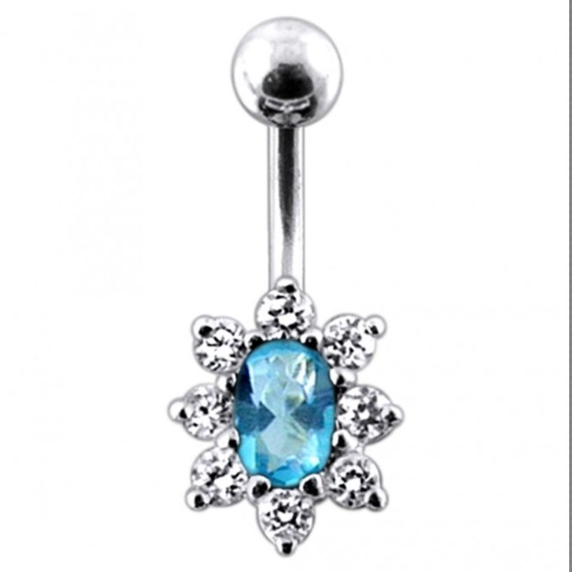 Piercingový šperk určený pro piercing pupíku. Piercing s kamenem a zirkony.