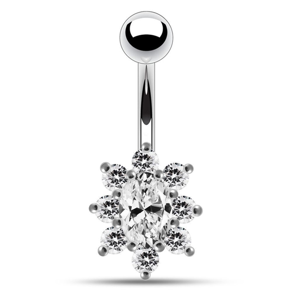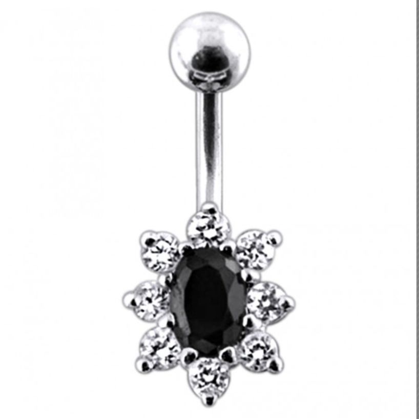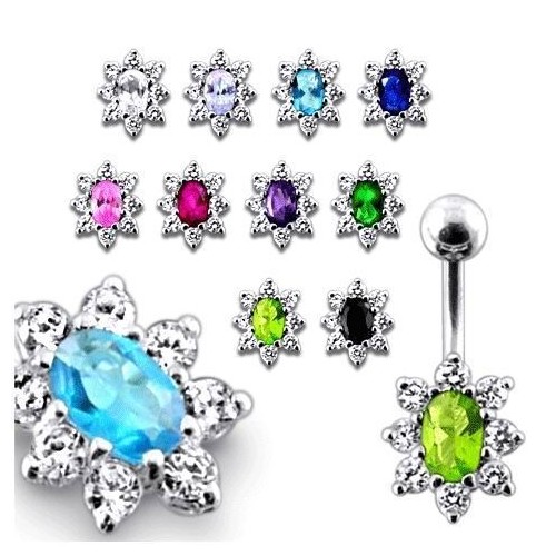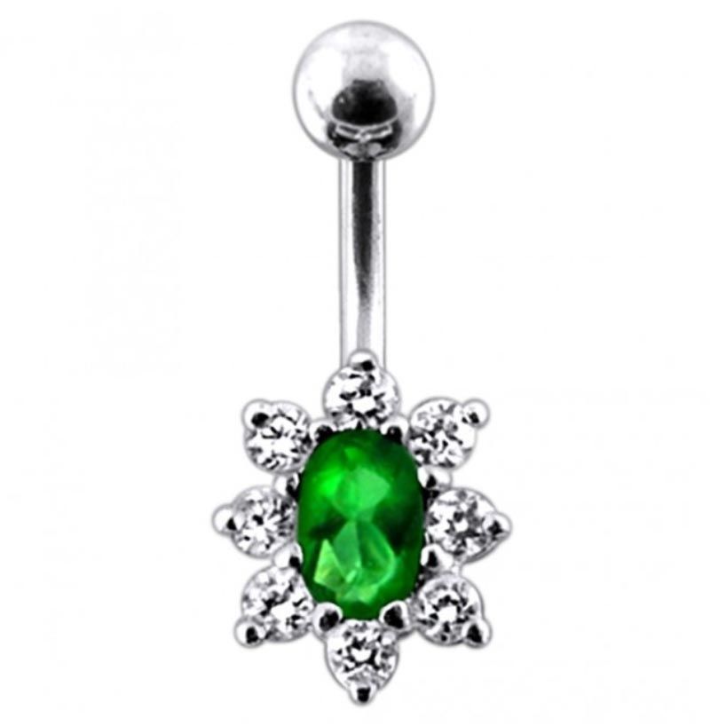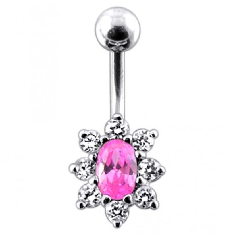 Piercingový šperk určený pro piercing pupíku. Piercing s kamenem a zirkony.
