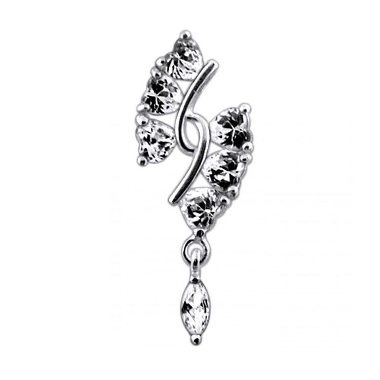 Piercingový šperk určený pro piercing pupíku. Piercing je zdobený ozdobou osázenou zirkony.