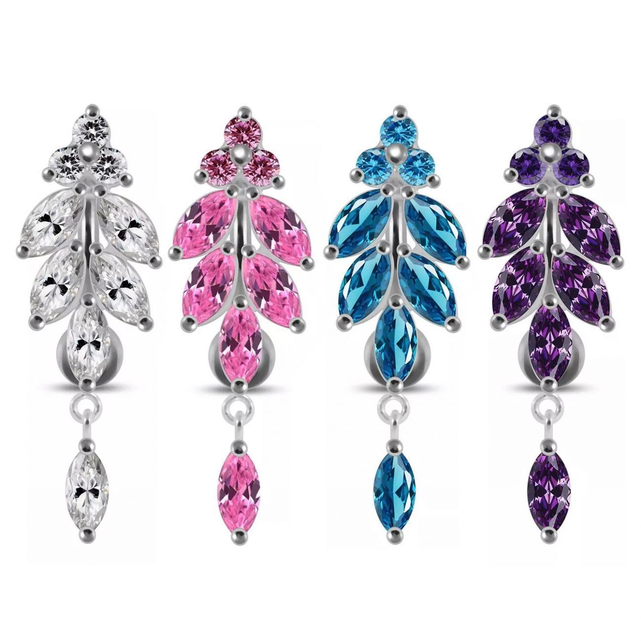 Piercingový šperk určený pro piercing pupíku. Piercing je zdobený zirkony.