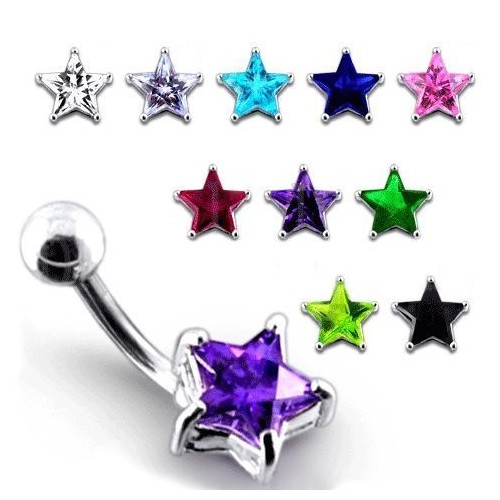 Piercingový šperk určený pro piercing pupíku. Piercing je zdobený hvězdičkou osazenou zirkonem.