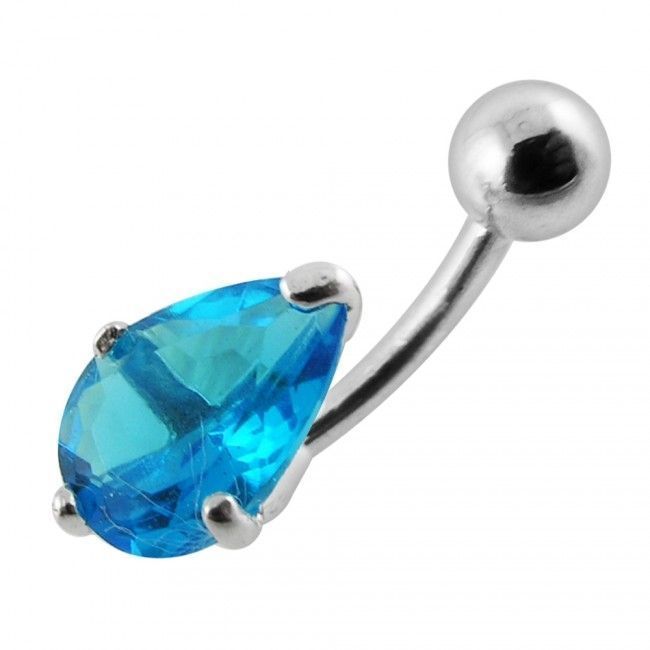 Piercingový šperk určený pro piercing pupíku. Piercing je zdobený zirkonem ve tvaru kapky usazené ve stříbrném kaplíku.