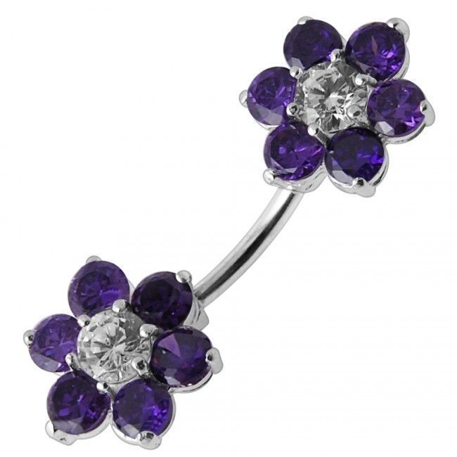 Stříbrný piercing do pupíku - kytičky (fialová)