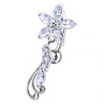 Piercingový šperk určený pro piercing pupíku. Piercing s kytičkou a dlouhou ozdobou se zirkony.