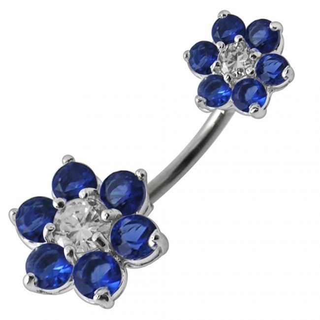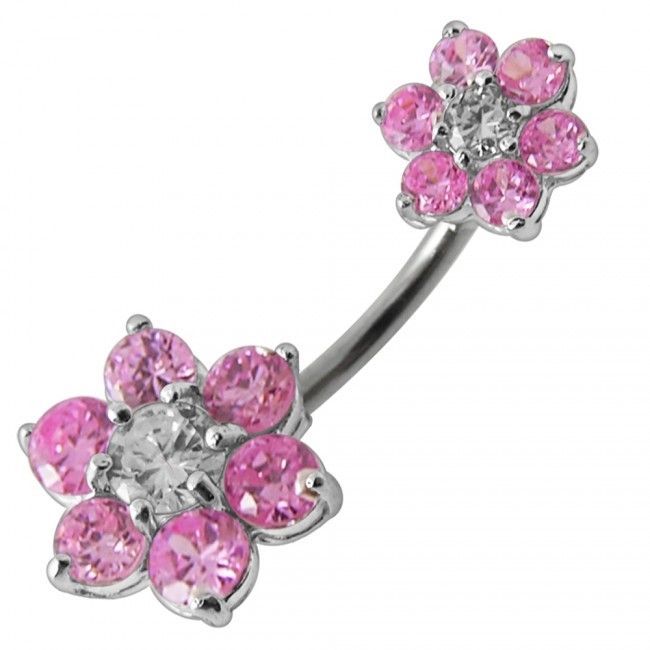 Piercingový šperk určený pro piercing pupíku. Piercing s květy zdobenými zirkony.