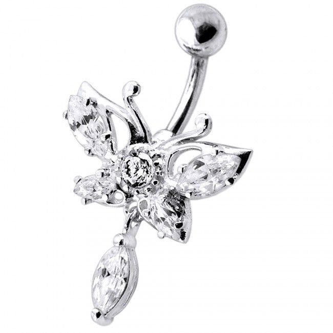 Stříbrný piercing do pupíku - motýl (čirá)