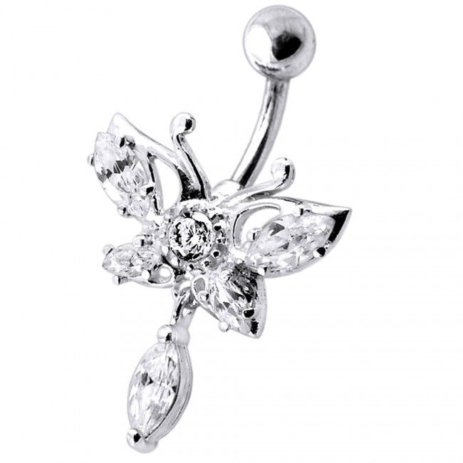 Ocelové šperky a piercing (19905) > Piercing (3927) > Piercing do pupíku (1008) > ocel 316L a stříbro 925 (93) > Stříbrný piercing do pupíku - motýl (čirá)