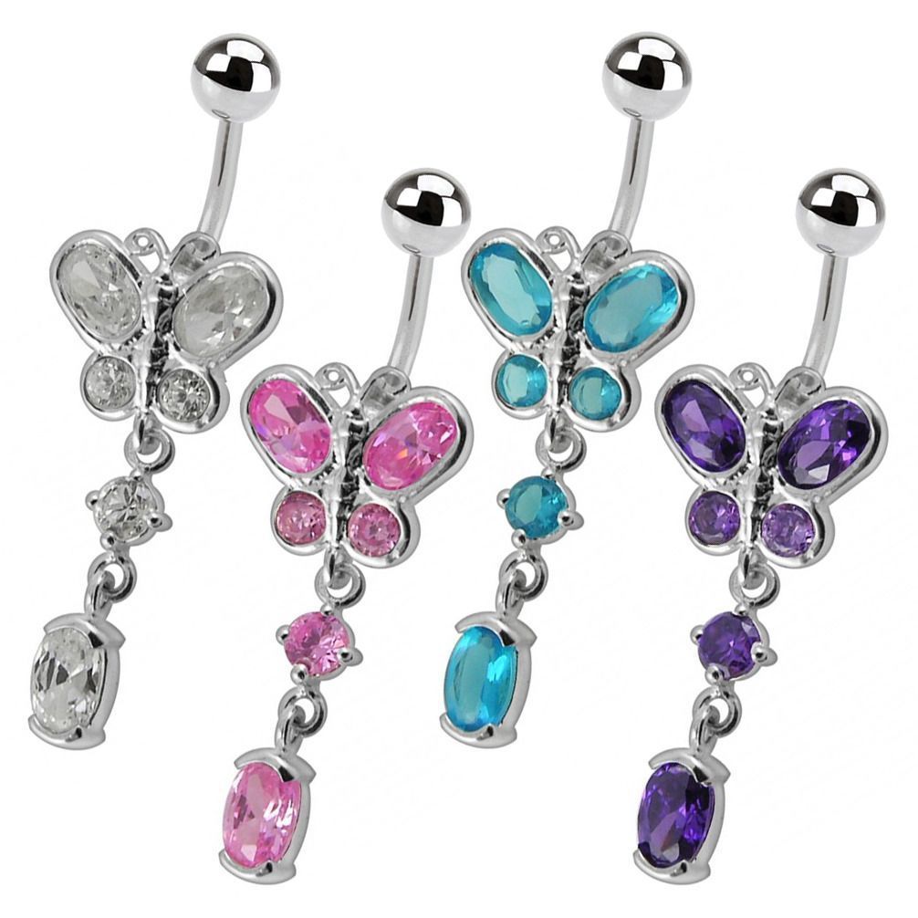 Ocelové šperky a piercing (20071) > Piercing (3918) > Piercing do pupíku (1012) > ocel 316L a stříbro 925 (88) > Stříbrný piercing do pupíku - motýlek (fialová)