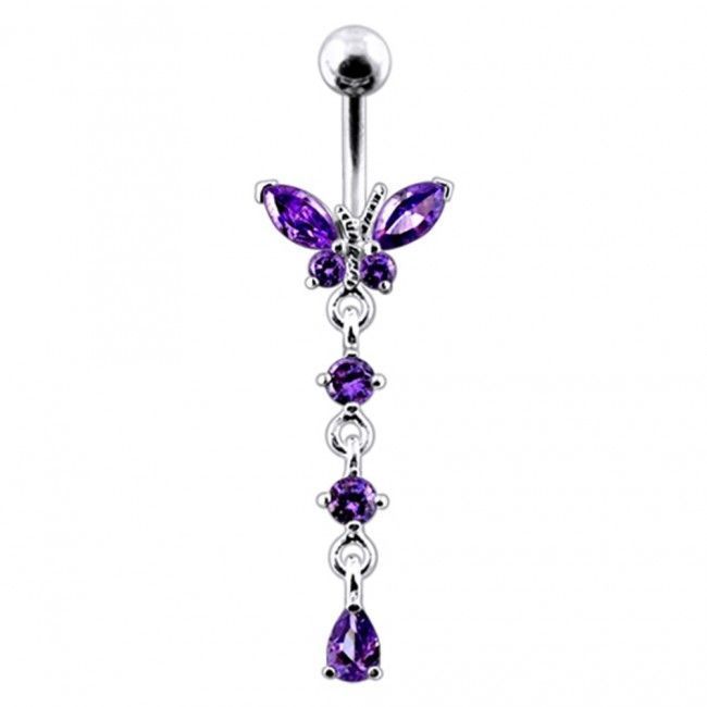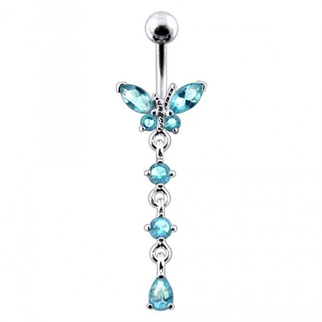 Piercingový šperk určený pro piercing pupíku. Piercing je zdobený motýlkem.