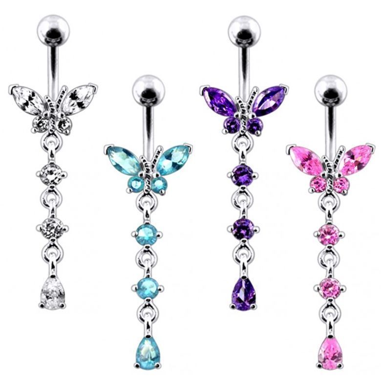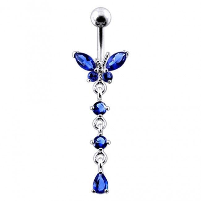 Piercingový šperk určený pro piercing pupíku. Piercing je zdobený motýlkem.