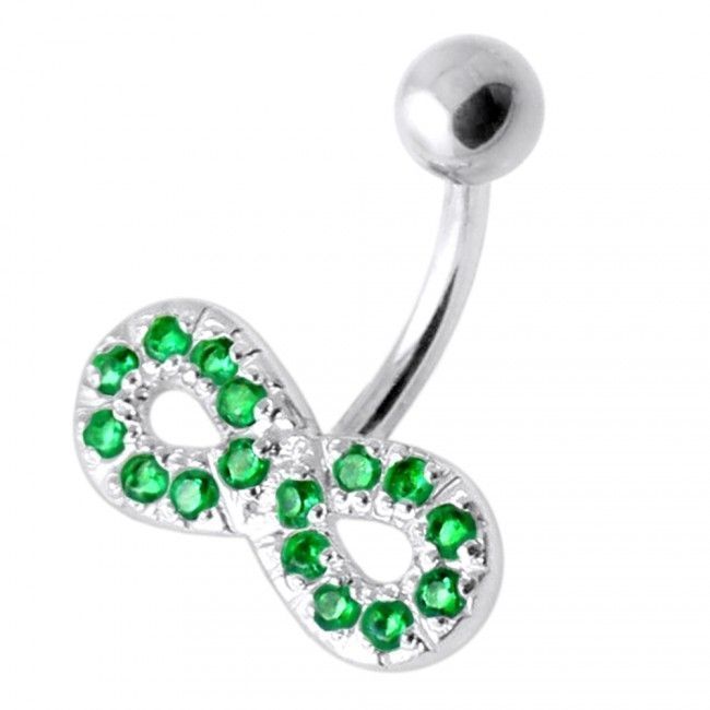 Piercingový šperk určený pro piercing pupíku. Piercing je zdobený nekonečnem osazeným zirkony.