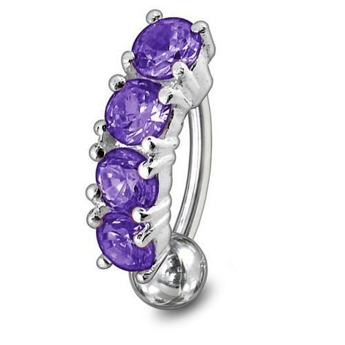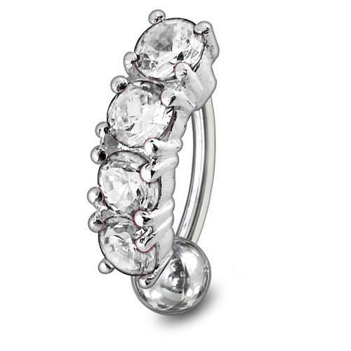 Piercingový šperk určený pro piercing pupíku. Piercing je zdobený štítem osazeným zirkony.