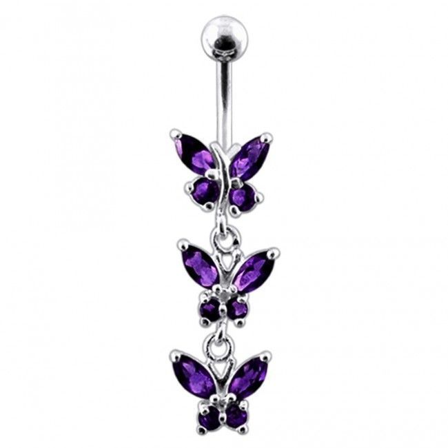 Stříbrný piercing do pupíku s motýlky (růžová)