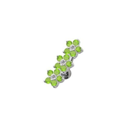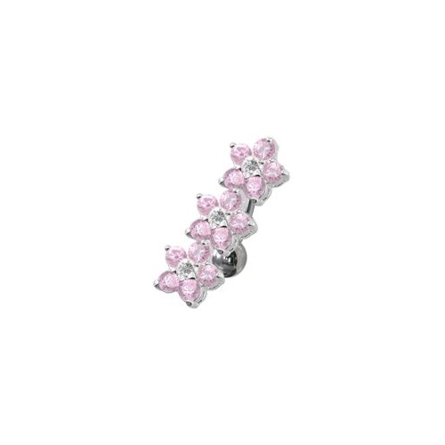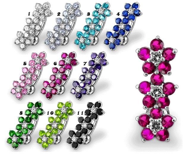 Piercingový šperk určený pro piercing pupíku. Piercing s kytičkami zdobenými zirkony.