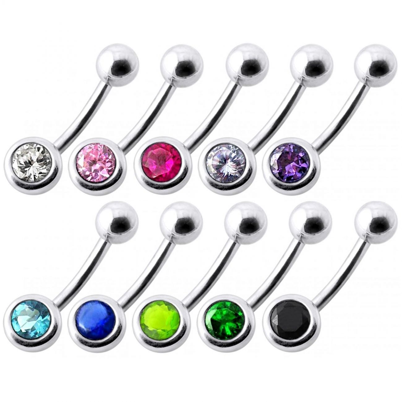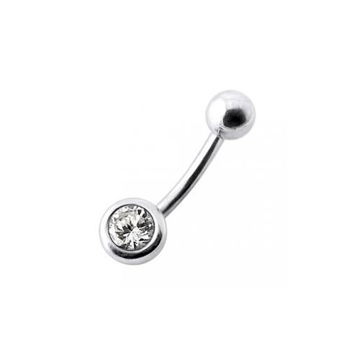 Piercingový šperk určený pro piercing pupíku. Piercing je zdobený kuličkou osazenou zirkonem.