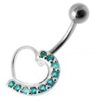 Piercingový šperk určený pro piercing pupíku. Piercing se srdíčkem, které je zdobené zirkony.