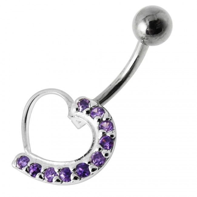 Stříbrný piercing do pupíku - srdce (tmavě fialová)