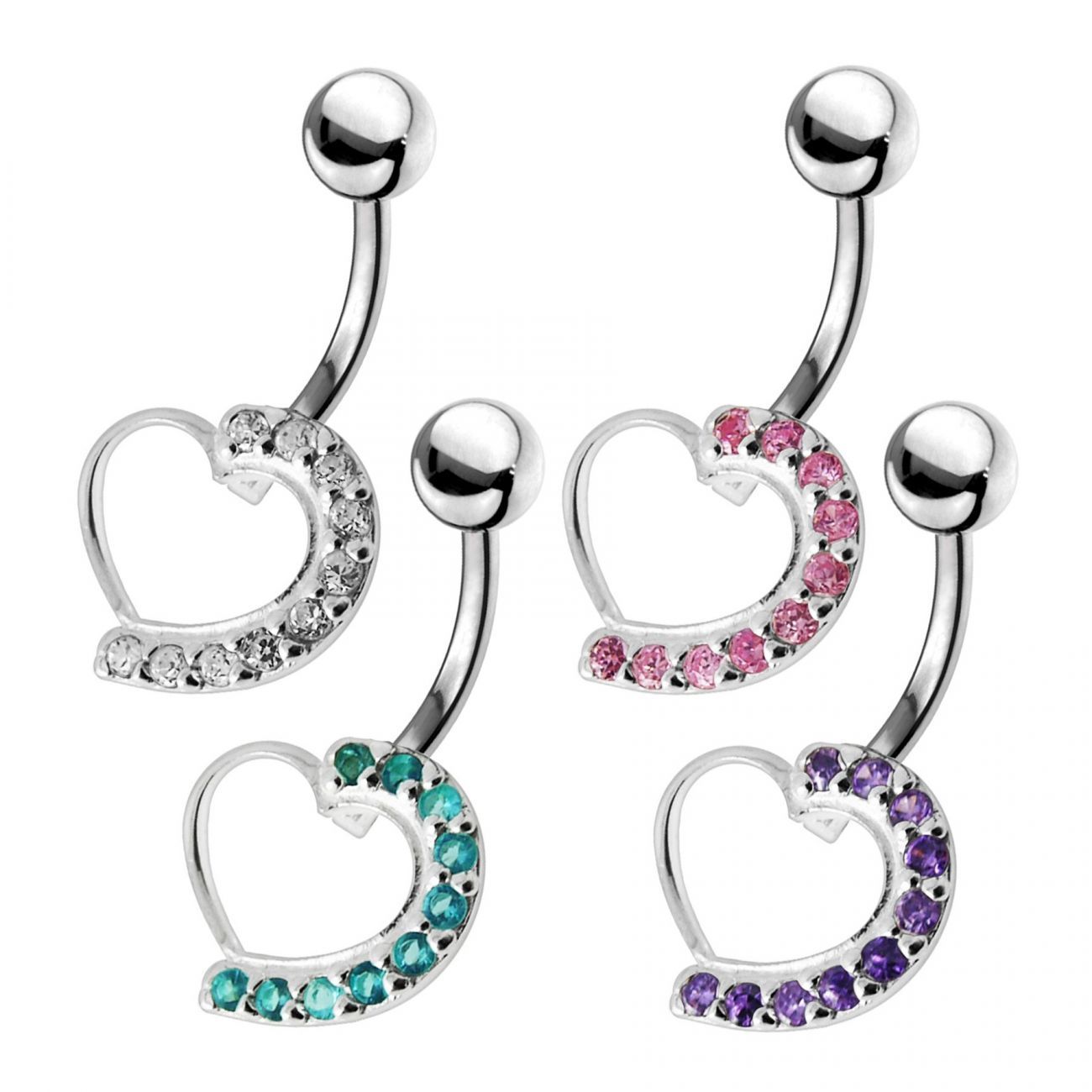 Piercingový šperk určený pro piercing pupíku. Piercing se srdíčkem, které je zdobené zirkony.