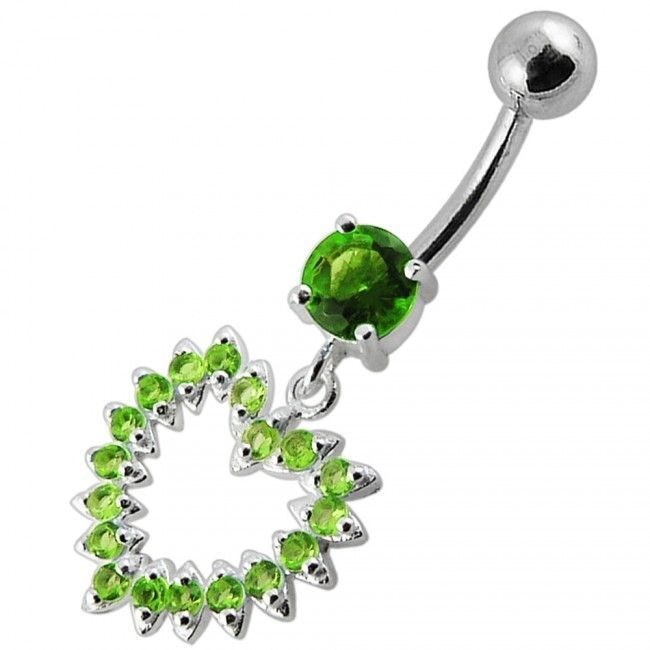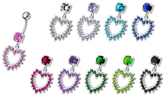 Piercingový šperk určený pro piercing pupíku. Piercing se srdcem zdobeným zirkony.