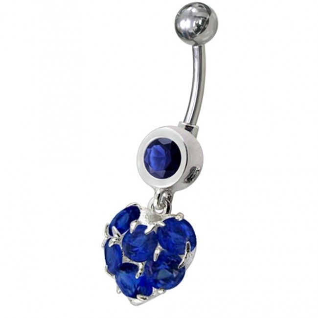 Piercingový šperk určený pro piercing pupíku. Piercing s ozdobou srdíčka, které je zdobeno zirkony.