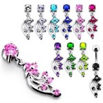 Piercingový šperk určený pro piercing pupíku. Piercing je zdobený kytičkou osazenou zirkony.