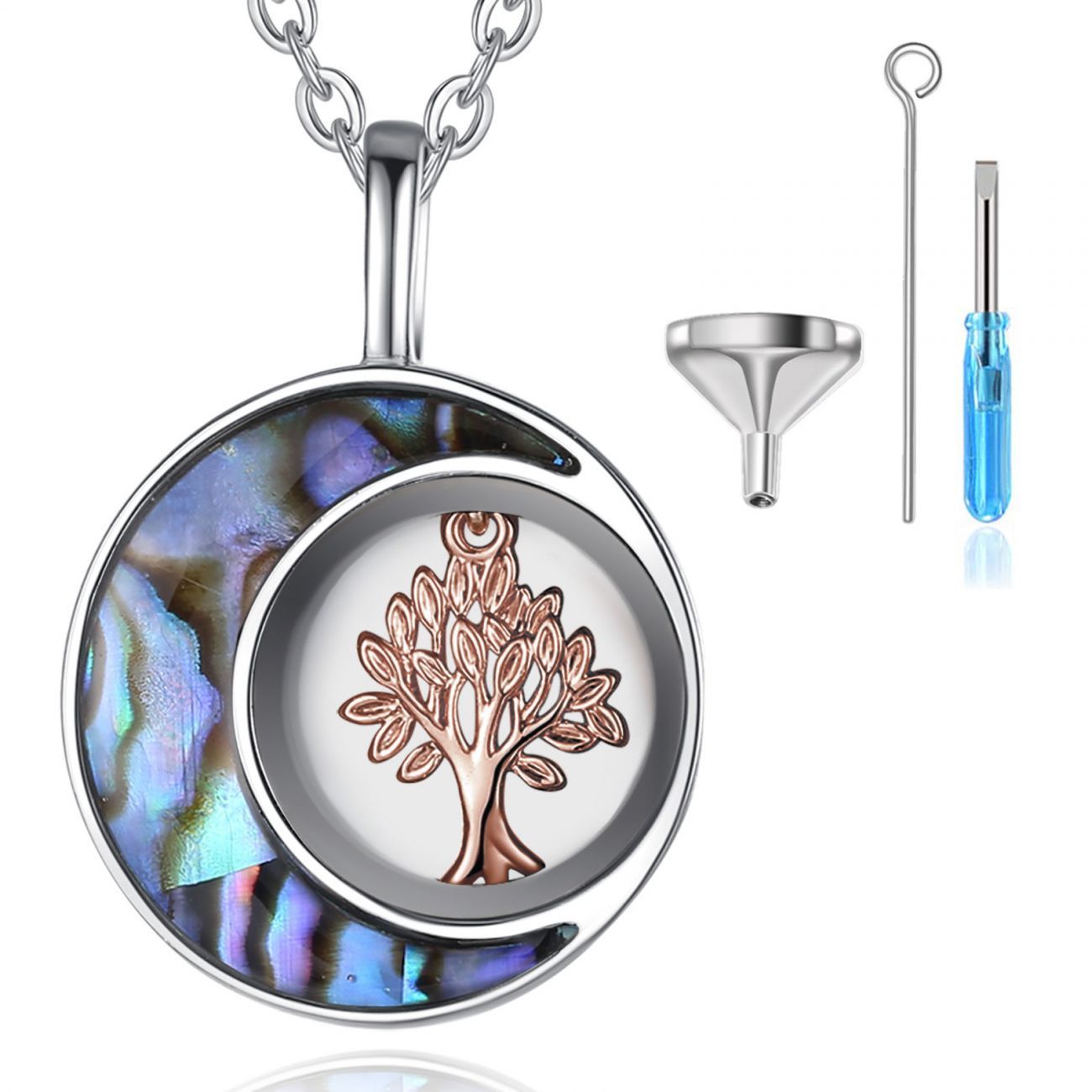 Stříbrný pietní náhrdelník - Strom života ve tvaru měsíce vykládaný perletí