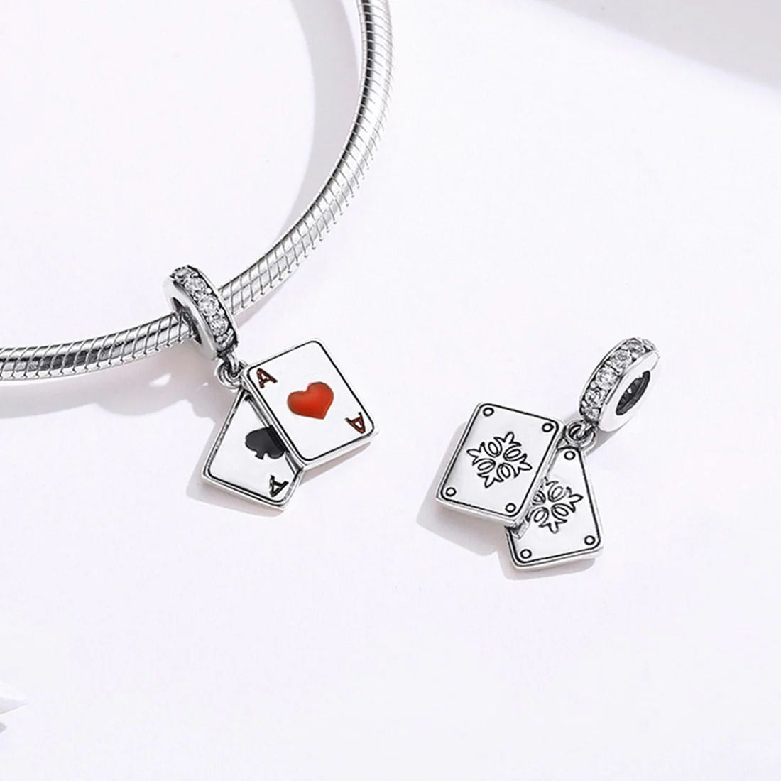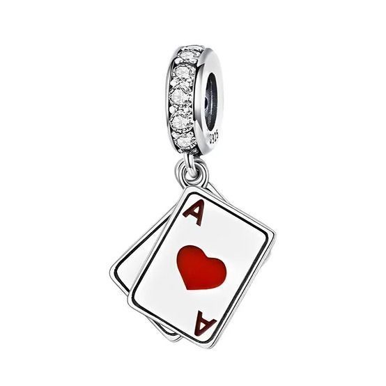 Stříbrný přívěšek korálek na náramek s přívěšky v podobě hracích karet