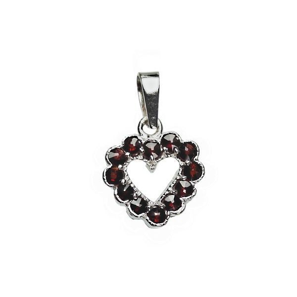 Stříbrný přívěsek srdíčko osázené přírodními granáty.