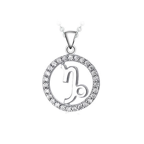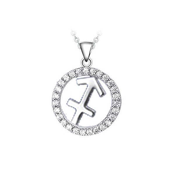 Stříbrný přívěsek ve tvaru znamení horoskopu. Přívěsek je osazený čirými zirkony.