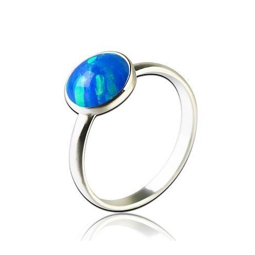 Stříbrný prsten se syntetickým opálem modré barvy