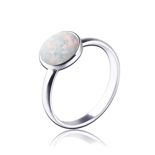 Stříbrný prsten se syntetickým opálem bílé barvy