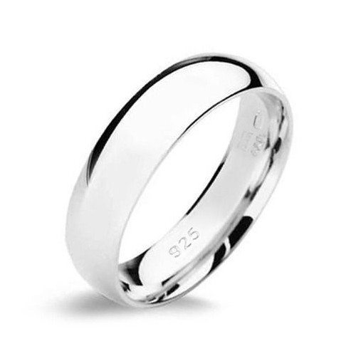 Stříbrný jednoduchý hladký lesklý mírně zaoblený prstýnek v šíři 6 mm. Vhodný i jako snubní.