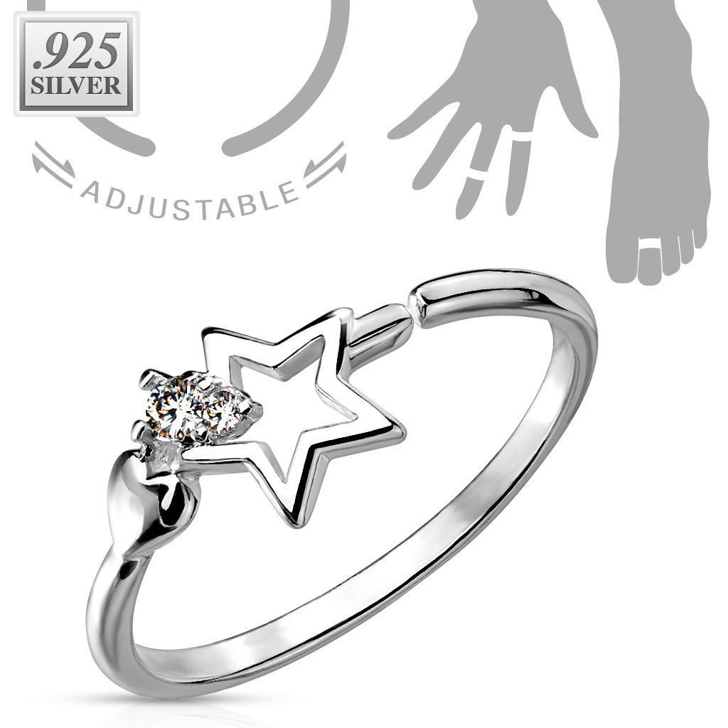 Stříbrný prstýnek na nohu zdobený hvězdičkou a kubickými zirkony čiré barvy.