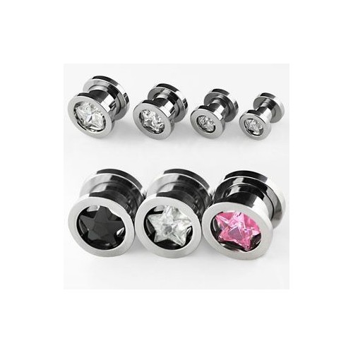 Ocelové šperky a piercing (16449) > Piercing (3892) > Tunely a plugy (306) > chirurgická ocel 316L (129) > Tunel chirurgická ocel s kamenem čirá hvězda APGZS