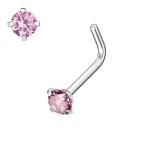 Zahnutý piercing do nosu zdobený kulatým zirkonem o průměru 2 mm.