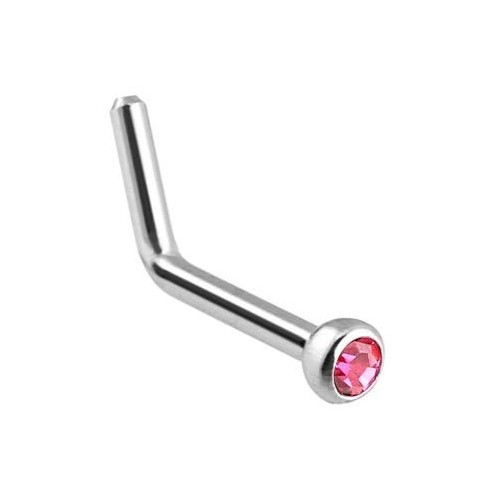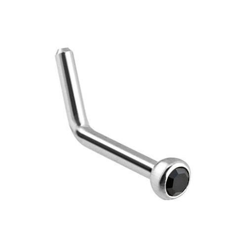 Zahnutý piercing do nosu z chirurgické oceli zdobený zirkonem.