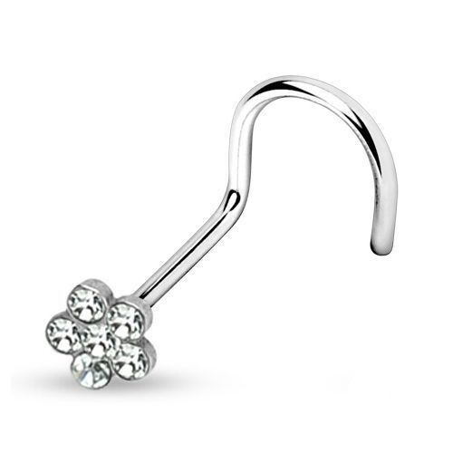 Piercing nosovka - piercing do nosu zdobený kytičkou.
