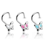 Ocelové šperky a piercing (14099) > Piercing (3894) > Stříbrný piercing (102) > Zahnutý piercing do nosu - motýlek (růžová)