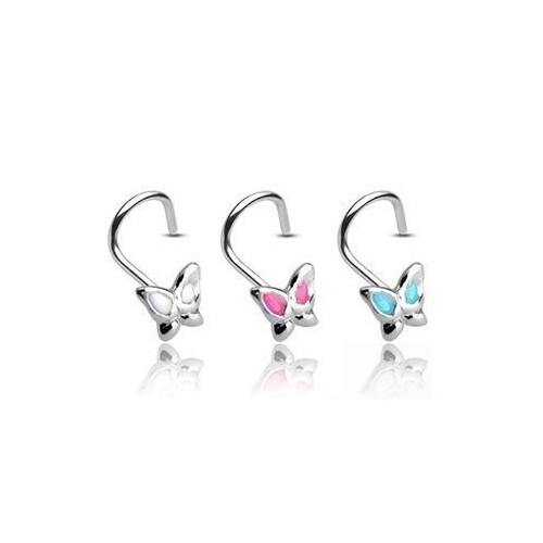 Ocelové šperky a piercing (19967) > Piercing (3911) > Stříbrný piercing (99) > Zahnutý piercing do nosu - motýlek (tyrkysová)