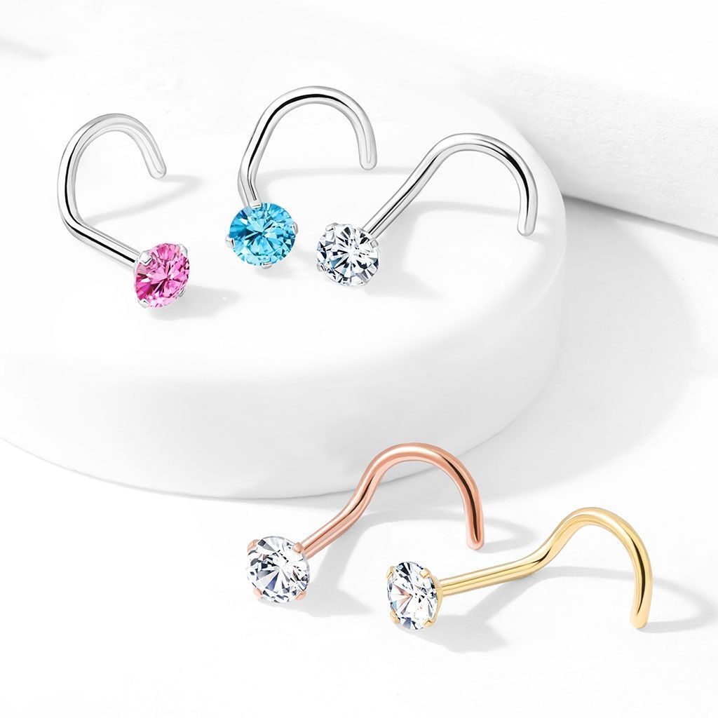 Zahnutý piercing do nosu - tyrkysový zirkon (2,5 mm)