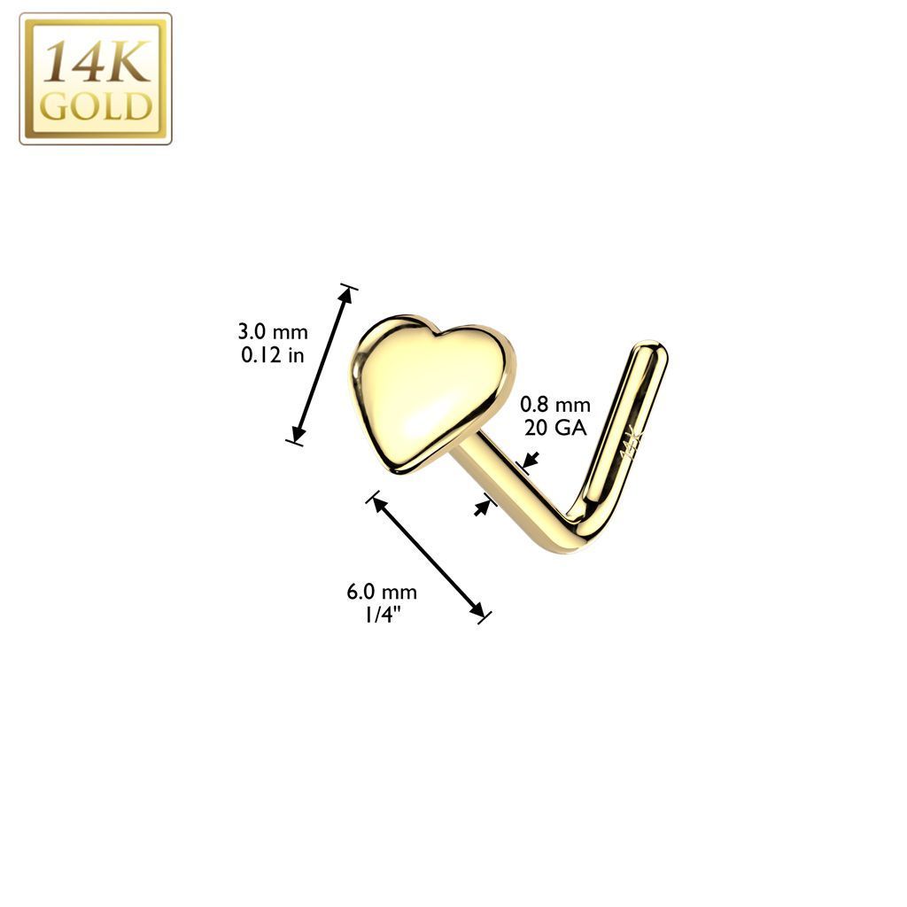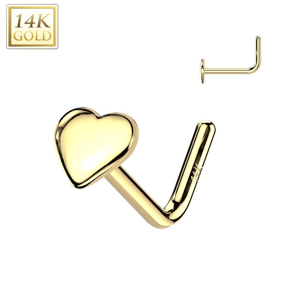 Ocelové šperky a piercing (16687) > Piercing (3955) > Piercing do nosu (574) > Zahnutý zlatý piercing do nosu - srdíčko, Au 585/1000