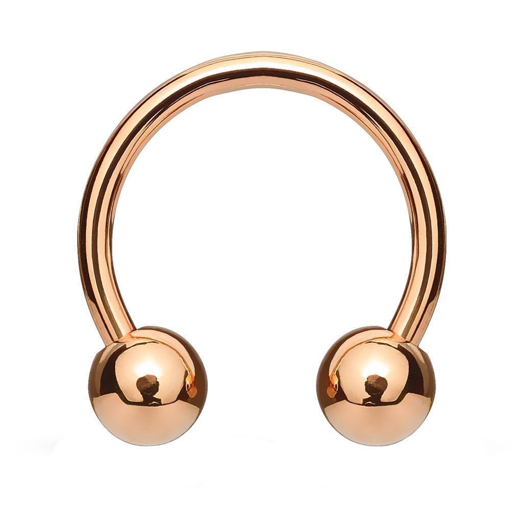 Piercing podkova z chirurgické oceli. Povrchově zbarvený do barvy růžového zlata.
