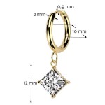 Náušnice z chirurgické oceli - kroužky zdobené zavěšeným čtvercovým zirkonem v ocelové objímce.