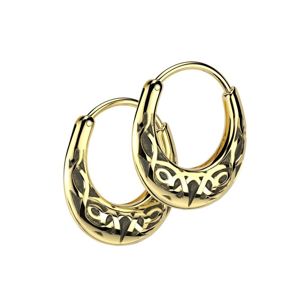 Ocelové šperky a piercing (17538) > Ocelové šperky (4094) > Ocelové náušnice (1183) > Kruhové náušnice (371) > Zlacené ocelové náušnice s ornamenty