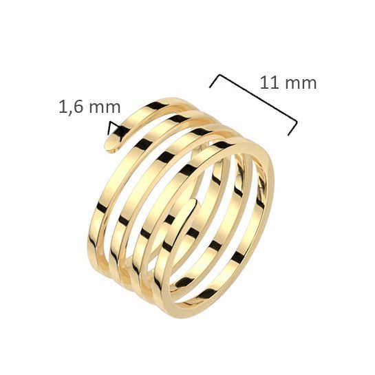 Prsten je vyroben z chirurgické oceli s jakostním označením 316L a má lesklou povrchovou úpravu v barvě žlutého zlata.