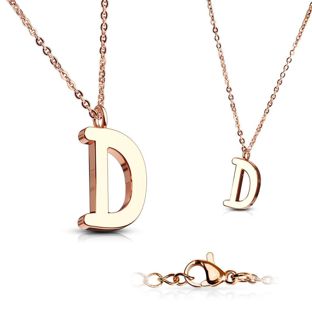 Ocelové šperky a piercing (16803) > Ocelové šperky (4208) > Ocelové náhrdelníky (445) > Zlacený ocelový řetízek s přívěškem iniciála ”D”