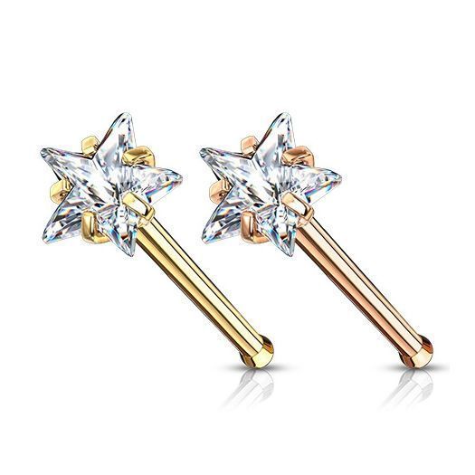 Piercing nosovka - piercing do nosu. Rovný piercing do nosu se zirkonem ve tvaru hvězdičky.