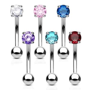 Piercing do obočí z chirurgické oceli zdobený čirým zirkonem oválného tvaru.