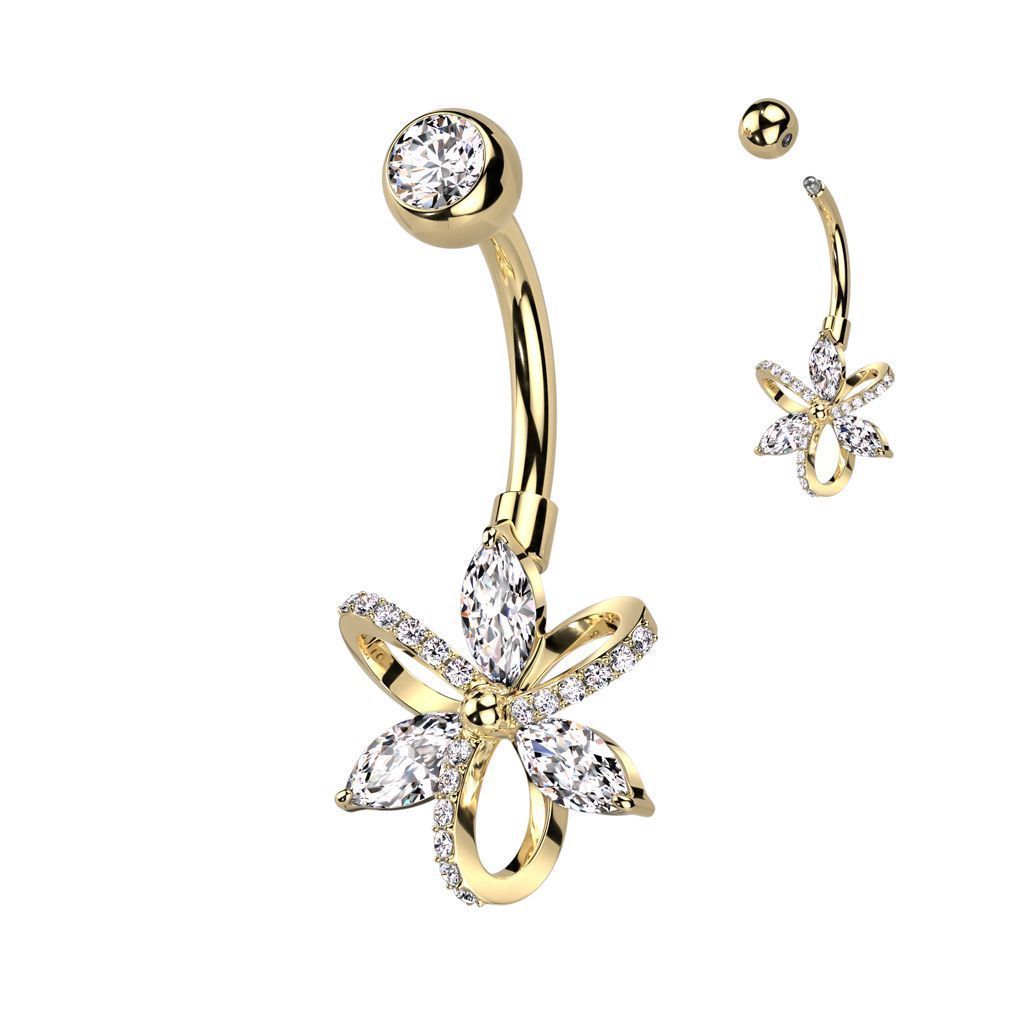 Ocelové šperky a piercing (20068) > Piercing (3888) > Piercing do pupíku (1006) > ocel 316L a bižuterie (521) > Zlacený piercing do pupíku - kytička (žluté zlato)