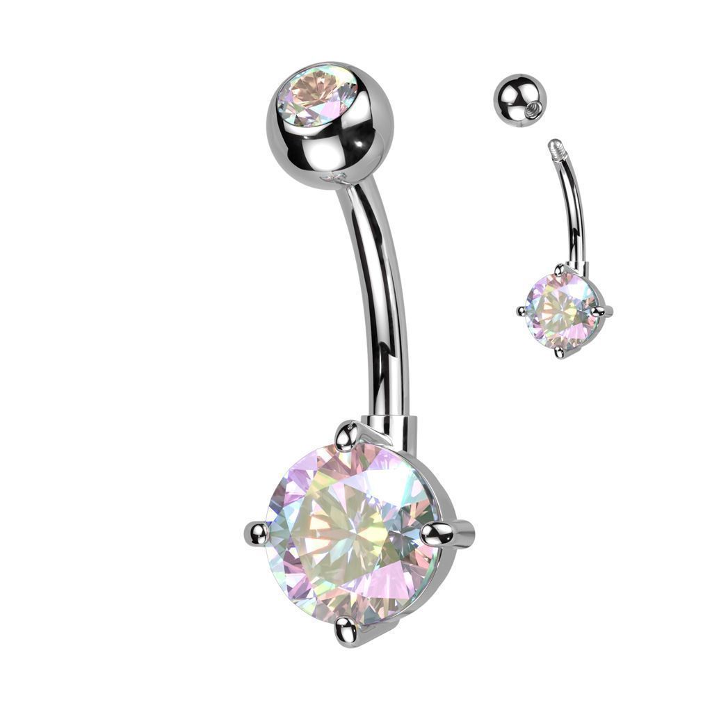 Piercingový šperk určený pro piercing pupíku. Se zirkonem kulatého tvaru.